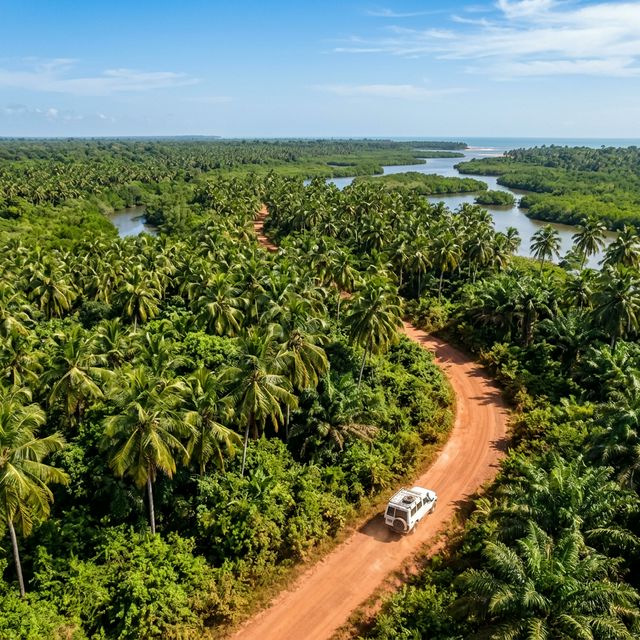 - Notre conseil : Un 4x4 ou un SUV avec une bonne garde au sol est idéal pour affronter les pistes parfois sablonneuses ou inondées en saison des pluies.